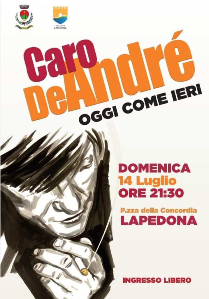 Caro De Andrè OGGI COME IERI, in piazza della Concordia di Lapedona domenica 14 luglio alle ore 21:30